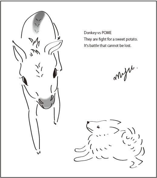 胸元には、ミシェル・ジョースターのモチーフになっているポメラニアンのポッキーと、お出かけ先で出会ったロバさんとの思い出のイラストをデザインしました。